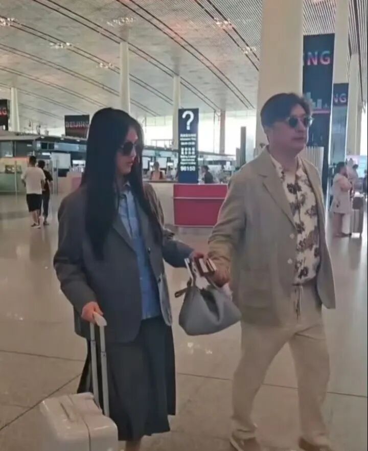 当天,王岳伦穿着一件卡其色西装,搭配同色系裤子,戴着墨镜,一身打扮很儒雅,看上去又发福了不少,相当有大佬范,难掩他大导演的气质。