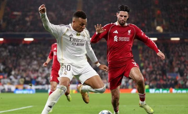 姆巴佩当晚最令人印象深刻的画面,是一脚将球射向安菲尔德路看台的高处,引来红军球迷的阵阵嘲弄。而维尼修斯则与布拉德利展开激烈对抗,最终这位北爱尔兰小将赢得了胜利。